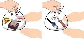- ライターは、家庭からのものに限り持込みできますが、中身を使い切り、他の物とは分けていただき、荷下ろしの際は、係員に手渡してください。