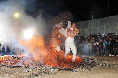 A sacred ritual is held in which 108 bundles of firewood are burned before the deity, and participants walk through the fire while chanting “Yassai Hossai.” It is said that taking home the remaining embers wards off evil spirits.