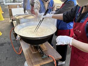 炊き出し訓練では、温かい豚汁が振る舞われました。