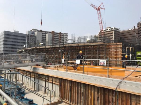 大ホールのホワイエです。1階立ち上がりの躯体工事を行っています。