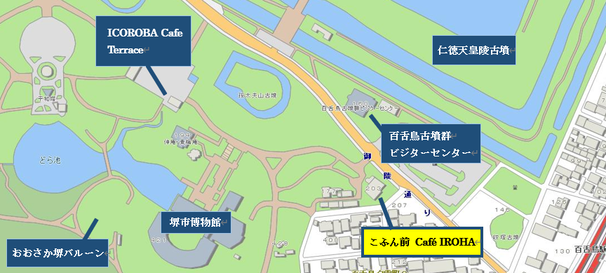 Park-PFI制度を活用した大仙公園(旧大仙公園事務所)飲食施設整備事業について、「こふん前Cafe IROHA」(正しくは「cafe」の「e」の上にダッシュがつきます)が下記のとおり営業しています。