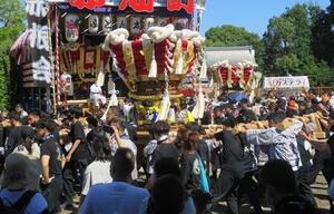 ふとん太鼓の宮出の様子(百舌鳥八幡宮月見祭伝統文化保存伝承実行委員会)