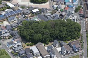 墳丘は二段に築かれ、南側くびれ部に造出しがあります。地中レーダ探査により、後円部中央には石で築かれた埋葬施設の存在が推定されています。