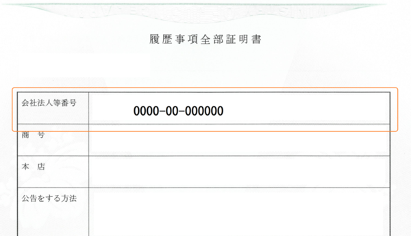 登記事項証明書に記載されている会社法人等番号を申請書等の備考欄に記載して下さい。
