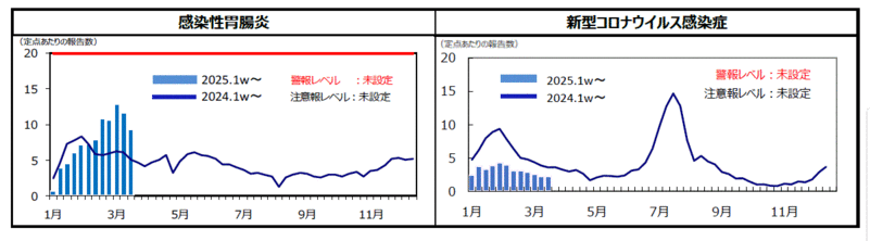 大阪府内推移グラフ(感染性胃腸炎・新型コロナウイルス感染症)