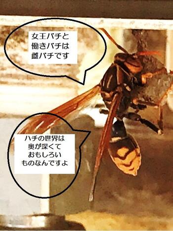 わかりやすい雄バチと雌バチの違い、おしりの形状に注目です!