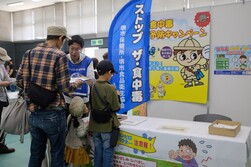 まつり当日には食中毒予防啓発のパネルブースを出展し、パネル内容に関するクイズに参加していただき、回答いただいた方に啓発グッズをお渡ししています。