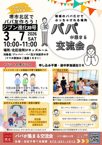 パパだけで来てもよし、こどもと来てもよし。プレパパもどうぞ。