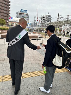 今年も4月6日から15日までの10日間にわたり「春の全国交通安全運動」が実施されています。本日、中百舌鳥駅前で街頭キャンペーンに参加し、交通ルールの遵守や自転車のヘルメット着用などを呼びかけました。皆様もこの機会に改めて交通安全に取り組み、交通事故の無い社会をめざしましょう。