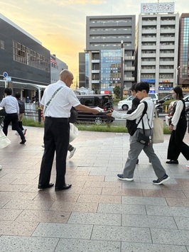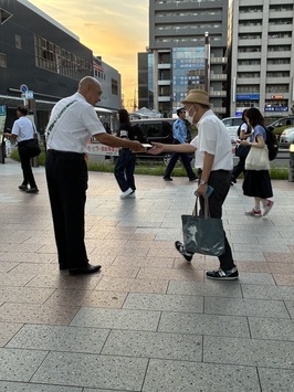 中百舌鳥駅前で交通ルールの遵守や交通マナーの実践などを呼びかけました。