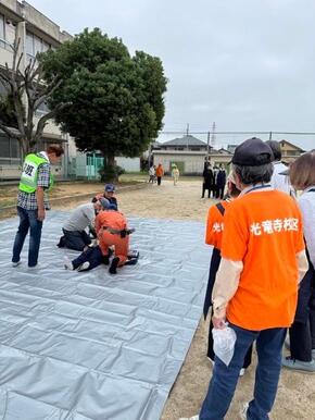 消火訓練やマンホールトイレ、段ボールベッドの組み立て訓練を行いました。