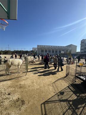 大泉学園の運動場でミニ新幹線や移動動物園、体育館でカローリングなどのニュースポーツと様々な催しを行いました。