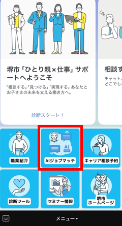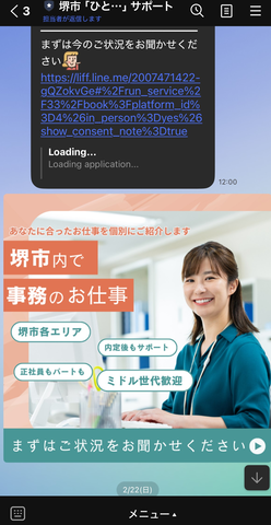 堺市「ひとり親×仕事」サポートLINE画面イメージ