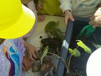 先日、各クラス夏野菜の苗や花の種植えをしました。「大きくなあれ~」と言いながら水やりをしています。芽がでてツルが伸び少しずつ生長していく様子を楽しんでいます。