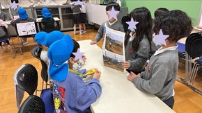 年長クラスのこどもたちがさつき野小学校の1年生と6年生のお兄さん・お姉さんと交流をしました。