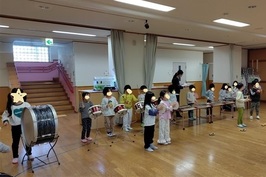 乳児クラスは手作り楽器を使ってあそび、音が出ることを楽しみ、幼児クラスは様々な楽器に触れそれぞれの音色を楽しんでいます。4・5歳児クラスになると合奏に取り組みます。みんなで一つの曲を演奏し、気持ちを合わせて取り組む喜びや達成感につなげています。