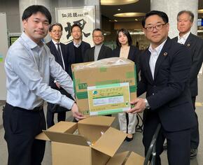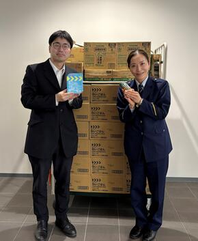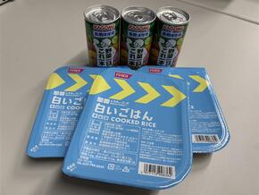 防災備蓄品の「チョコえいようかん」200食、「レスキューフーズ白いご飯」1,412食、「野菜一日これ一本」420本をご提供いただきました!