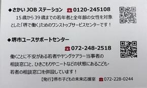 - さかいJOBステーション、キャリアナビさかい、堺市ユースサポートセンター、生活・仕事応援センター「すてっぷ・堺」、消費生活センター、こころの相談機関、健康、感染症予防、環境、ボランティア情報等のちらしやポスターを配架・掲示しました。