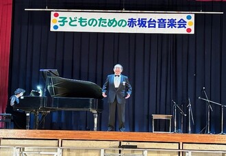 令和7年11月3日(月曜)、赤坂台小学校にて音楽会を開催しました。毎年文化の日に、青少年指導員会が主催し、連合自治会・中学校区健全育成協議会の共催で行っていて、今回で39回目となります。出演者はこどもたちから高齢者までの14グループで、各々素晴らしい演奏を聞かせてくれました。特に地域在住のオペラ歌手「田中公道」さんの熱唱に惜しみない拍手が送られていました。