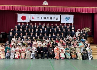 令和8年1月12日(月曜・祝)、赤坂台中学校にて「二十歳を祝う会」を開催しました。毎年成人の日に、新檜尾台・赤坂台の青少年指導員会が共同で、両校区の連合自治会・中学校区健全育成協議会の共催で行っています。
