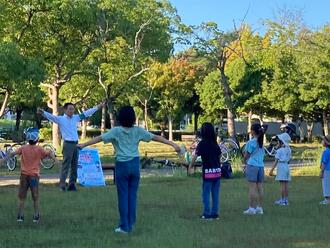 夏休み前後の各3日間、庭代公園で朝6時30分からラジオ体操を実施しています。小学生だけでなく幼児も保護者と一緒に参加してくれています。