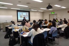 はじめに、かなおか保育園の園長先生はじめ、先生方から「かなおか保育園の園内研修と取組について」講話をしていただきました。園の保育理念をどのように職員で共有し、体制づくりを行うか、その工夫は様々です。今回は、かなおか保育園の園内研修の取組や実践から学び「職員が楽しみながら研修に参加できる工夫がされている」「子どもの心の動き“わくわく”の追いかけ方がとても勉強になった」などの感想がありました。