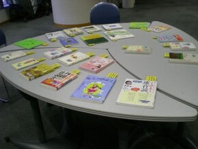 会場では、山川みやえさんの著書、音読や認知症予防に関する資料などを展示しました。