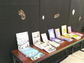 「こわいおはなし大会」で語られたおはなしの本を展示しました。図書館で借りることができますよ。