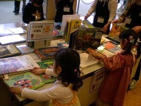 「とびだすえほん」は、大人もこどもも仕掛けに興味津々でした。