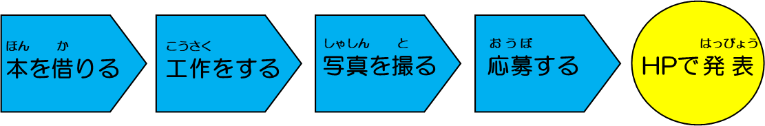 南図書館(minamito@city.sakai.lg.jp )あてに、メールタイトルを「工作発表」にして送ってください。
