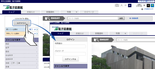 電子図書館からログアウトするには