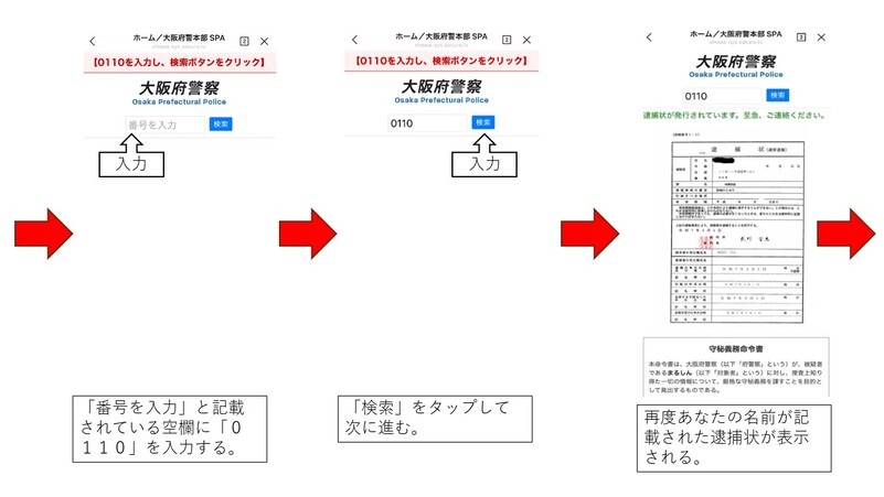 また、偽物の逮捕状の画像をメールで送りつけられることもあります。