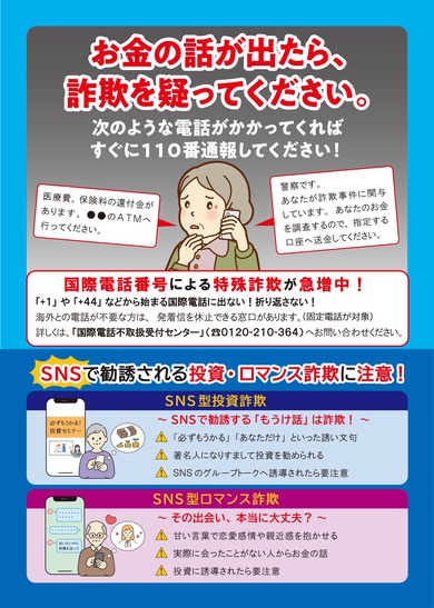 「自分は大丈夫」と思っていても、巧妙な手口でだまされるケースが後を絶ちません。少しでも不安を感じたら、 一人で判断せず、家族や信頼できる人に相談してください。