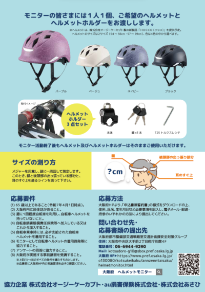 大阪府自転車ヘルメット着用モニター募集チラシ(PDF:1,150KB)