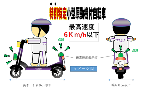 「特定小型原動機付自転車」の条件について詳しくはこちら(大阪府警察)