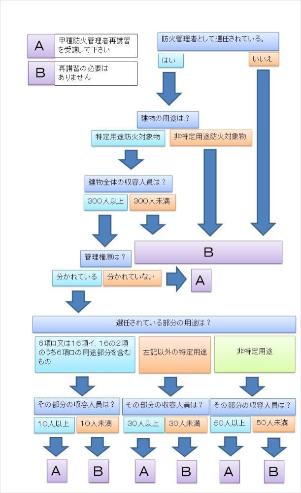 ※乙種防火管理講習修了者を防火管理者として選任することができるテナント部分(収容人員が30人未満の特定用途、または収容人員が50人未満の非特定用途のテナント部分)の防火管理者については、受講義務はありません。