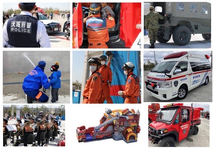 消防、自衛隊、警察他、日立建機日本株式会社ショベルカー、大阪ガスネットワーク株式会社緊急車両などのはたらくクルマも展示!