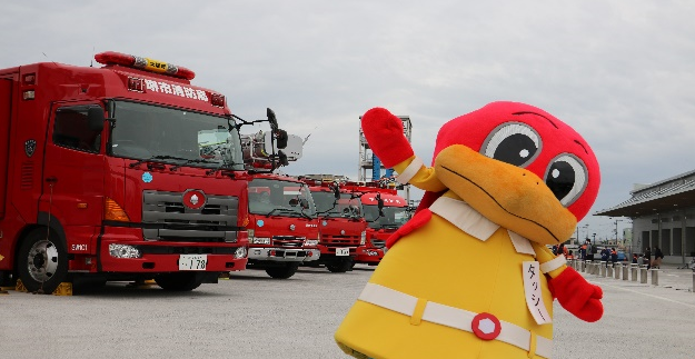 イベント内容:救急隊による応急手当講習・レスキューバイクなどの資機材展示・子ども用防火衣の着用体験・タッシ―との記念撮影など