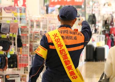 不特定多数の人が出入りする建物に、消防職員が特命で立入検査を実施し、消防用設備等の設置状況や避難ルート上の不必要な物品の有無など、火災予防上の安全を確認します。