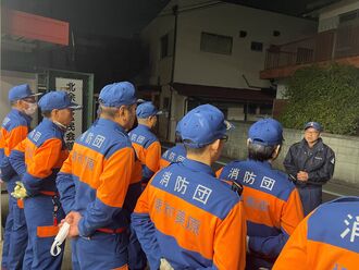 また、堺市美原消防団長、堺市消防局及び美原消防署の幹部職員が各分団屯所へ激励に訪れ、団員の⼠気⾼揚に繋げることができました。