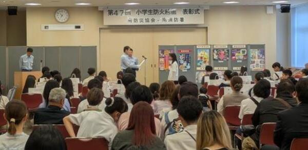 南防災協会・南消防署が主催する「小学生防火絵画展」が47回目を迎えました。南区内から集まった作品のうち、選出された特別賞7作品と優良賞41作品の計48作品を描いた作者たちを「ビッグ・アイ」に招待し、授賞式を行いました。