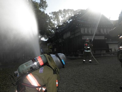 文化財防火デーに伴う合同訓練を実施しました!(石津太神社)