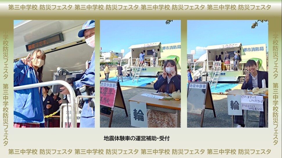 この度の防災フェスタは、当校の3年生が各防災関係ブースを体験するのではなく、主体となって運営するというもので、地域の皆様のご指導のもと、非常に熱心に取り組まれていました。
