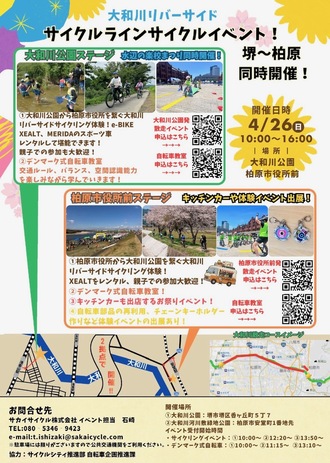 4月26日(日曜)に開催される「大和川水辺の楽校まつり」にあわせてサイクルイベントを実施します。