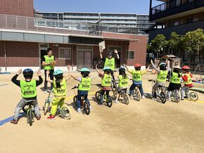 キックバイクを使い、遊びながら自転車のバランス感覚や交通ルール、空間認識能力、協調性などが学べる自転車教室です。ゲーム感覚で自転車のルールを学びませんか。