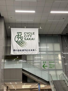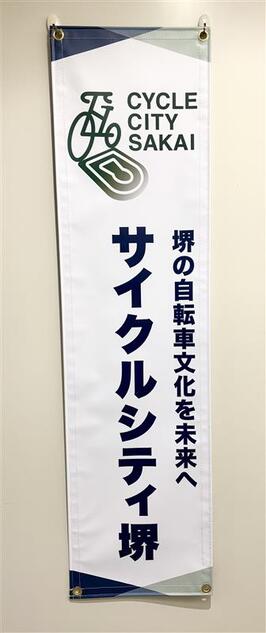 堺自転車産業振興会様から、「サイクルシティ堺」の取組への支援として、街路灯吊幕やエコバッグ等をご 寄贈いただきました。 これら物品は、自転車月間(5 月)をはじめとした様々な機会で活用し、「サイクルシティ堺」の発信に役立てます。