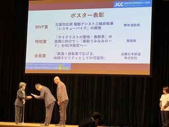 この度、本市消防局と地元事業が連携して開発した災害対応用電動アシスト三輪自転車「レスキューバイク」が、第12回 自転車利用環境向上会議 in 名古屋のポスターセッションにおいて、MVP賞を受賞しました。