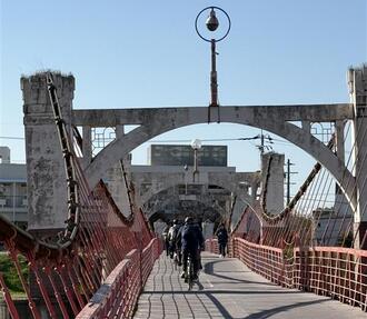 歩行者または自転車でしか渡ることができないノスタルジックな佇まいの橋です。