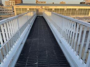 この人道橋は建設してから54年が経ち、舗装や塗装塗膜の老朽化が進んでいたため、舗装の打ち換えや塗装の塗替えなどの補修を行いました。