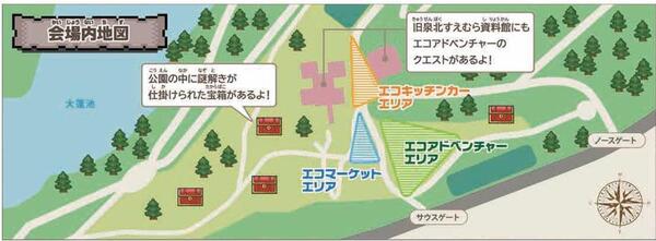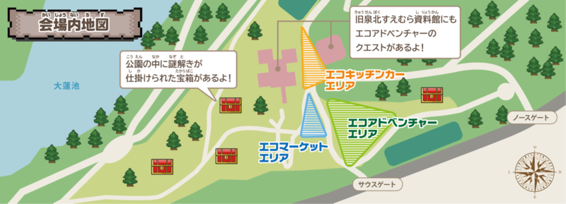 ・会場にはノースゲートやサウスゲートから入場し、エコアドベンチャーに参加される場合は受付までお越しください。